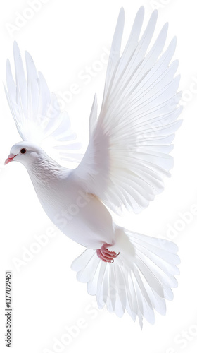 Isolated White Dove Flying With Spread Wings On Transparent Background