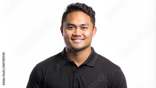 young, pacific, islander, man, alone, confident, standing, isolated, white, background, transparent, black, polo, shirt, formal, casual attire, relaxed, posed, professional, clean, minimalistic, textured, smooth, crisp, vibrant, energetic, youthful, male, adult, single, solitary, figure, shape, square, rectangle, frame, border, edge, silhouette, contour, line, curve, geometric, abstract, artistic, studio, still life