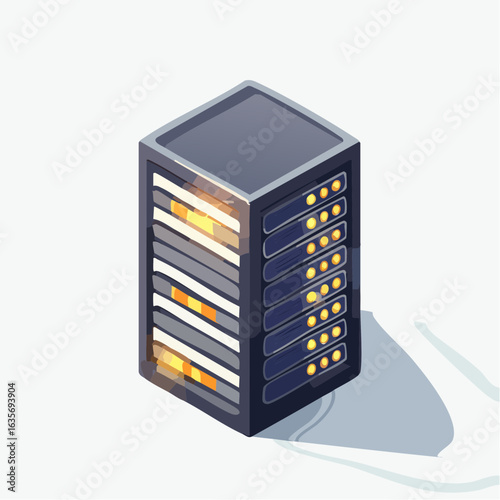 Isometric Server Vector Icon for Cloud Computing and Network Technology