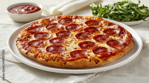 italian food Delicious Pepperoni Pizza on White Plate with Fresh Ingredients and Sauce