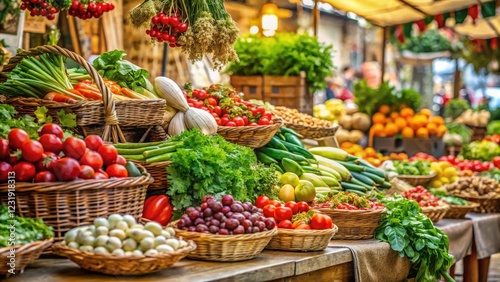 Italian food market with fresh produce and herbs , herbs, italian cuisine