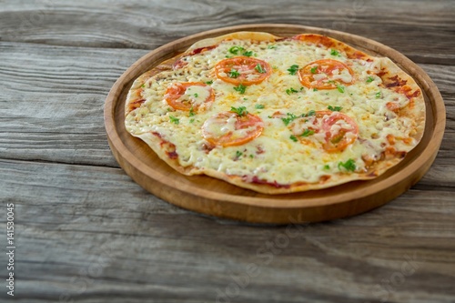 Italian pizza on a wooden plank