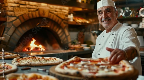 Italian-style pizza chef in kitchen stock photo --ar 16:9 --raw --v 6 Job ID: 8aa77452-e5c1-4cdf-8d7b-8649a6b1fdca