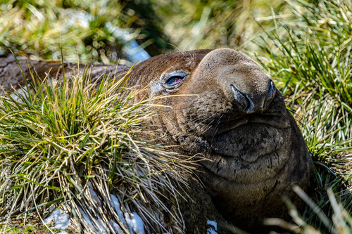 It's Elephant seal with a satisfied look. South Georgia, South Atlantic Ocean.