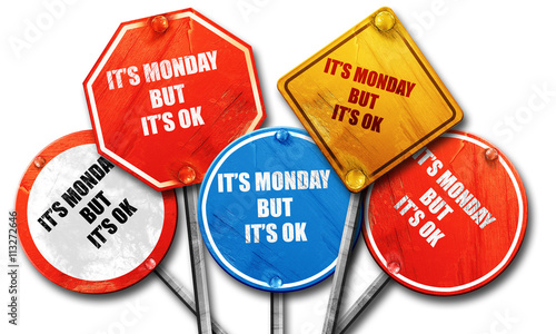 road, signs, its, concept, ok, background, space, monday, happy, business, nobody, week, instant, office, surface, advertising, dark, morning, day, photograph, hot drink, rest, communication, break, time, reminder, hallo, start, street, yellow, red, blue, white, isolated, isolation, text, letter, word, grunge, grimy, rough