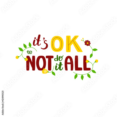 It's ok to not do it all - hand-drawn lettering quote. Motivational phrase about mental health. Can be used as decoration for cards, t-shirts, covers, bags, cups, etc.