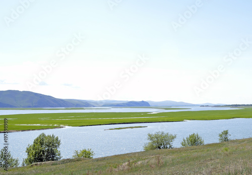 It's spring. Siberian river came out of the banks and spilled over the steppe