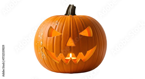 Jack o lantern isolated on transparent background, a carved pumpkin for halloween