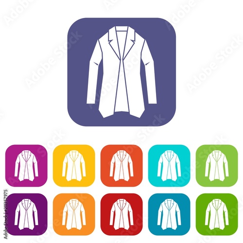set, collection, icon, flat, vector, red, blue, green, jacket, simple, illustration, logotype, symbol, signs, object, isolated, human, shirt, business, male, suit, front, person, attaching, manager, businessman, coat, leather, clothing, casual attire, female, woman, style, clothes, clothes, apparel, fashion, modern