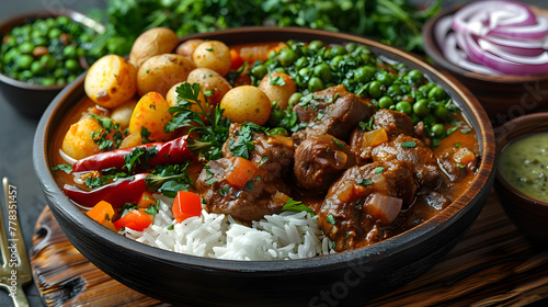 Jamaican Curry Goat on Decorated Table for HD Wallpaper with Cinematic Effect