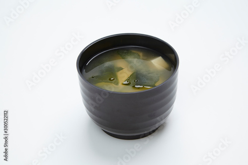 Japanese food, Miso soup of seaweed wakame in a bowl