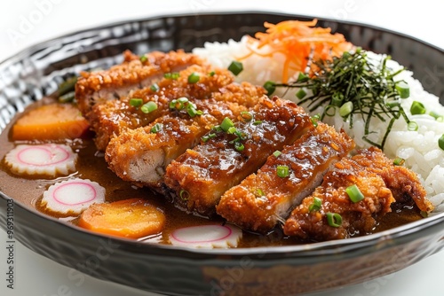 Japanese katsu curry with breaded pork cutlet and rice