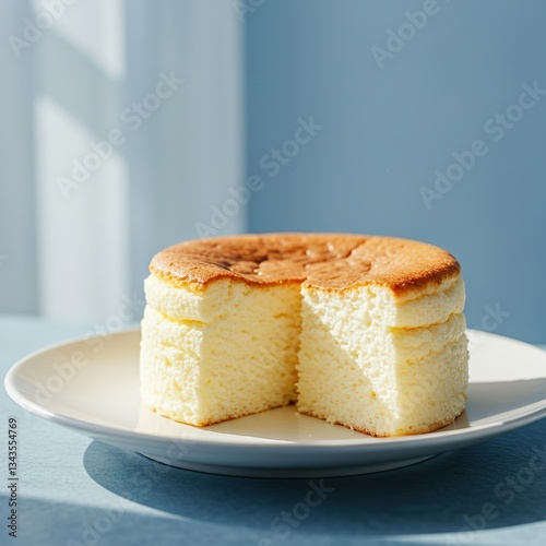 Japanese Soufflé Cheesecake on White Plate – Fluffy and Light Sponge Dessert with Soft Texture and Golden Brown Top