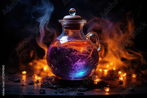 Jar of magical healing / mana potion in a glass jar on a dark background