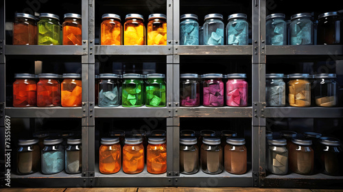 shelf, kitchen, food, powder, glasses, jar, wooden, wood, jar, interior, box, home, cupboard, store, shop, house, shelf, supermarket, design, old, decoration, cabinet