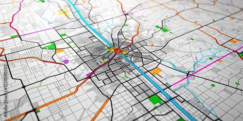 Jasper Alabama Street Map - Black and White Lines - Vibrant Colors - AI Photo