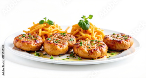 Jedzenie na białym tle. Pięknie skomponowane dania żywieniowe gotowe do wstawiania. Potrawy - jedzenie.