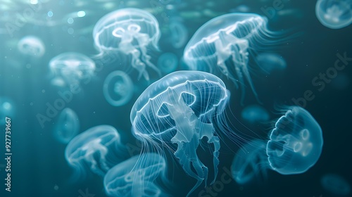 Jellyfish elegant with numerous jellyfish floating in calm