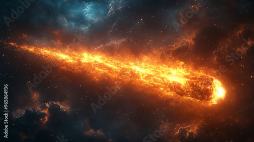 Jet Fuel Trail or Comet Streak: A Fiery Meteor, Rocket Launch, or Supernatural Event Racing Through the Sky with a Glowing Vapor Trail of Light and Fire