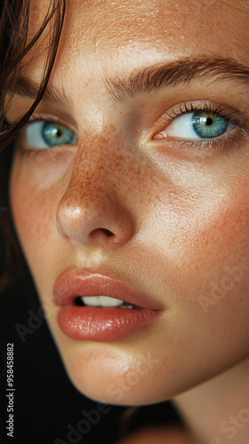 portrait, woman, brown-haired, beauty, face, young, eye, look, expression, lip, skin, natural, closeup, minimalist, simplicity, serenity, fashion, frontend, interior, studio, detail, aesthetic, model, glamour, contrast, femininity, purified, sweetness, texture, brown hair, calm, elegance, front, intimately
