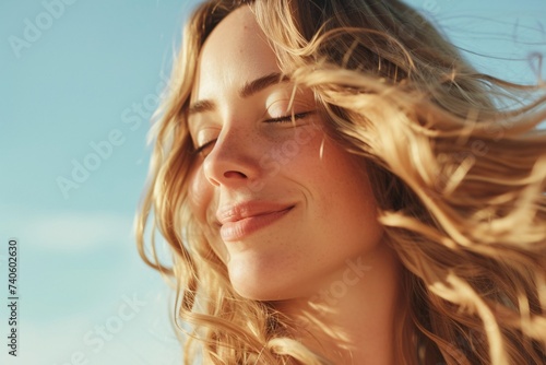 Jeune femme souriante profitant du soleil d'été » IA générative