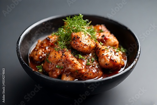 Jjimdak soy-braised chicken in black bowl