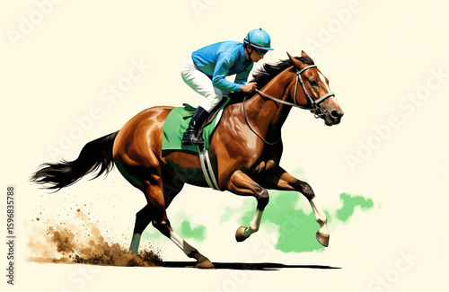 kentucky, horse, race, minimal, illustration, icon, jockey, hat, track, competition, race track, flat, design, clean, simple, silhouette, event, horse racing, tradition, equestrian, speed, winner, finish line, sport, riding, horseshoe, celebration, minimalistic, bold, modern, pattern, athletic, performance, racing, elegance, classic, equestrianism, thoroughbred, dirt, turf, rider, helmet, blue, shirt, brown, coat, white