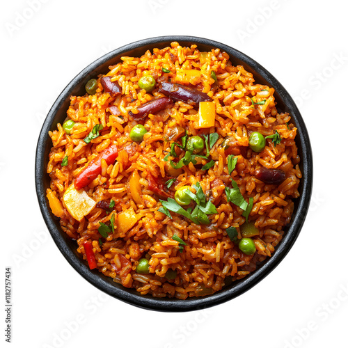 Jollof Rice for Iftar with Vegetables and Peppers Isolated on Transparent Background