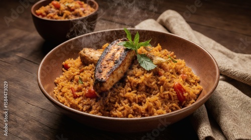 Jollof Rice West African Spiced Tomato Rice with Grilled Chicken