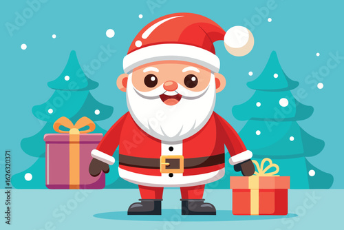 santa, christmas, cartoon, illustration, holiday, winter, snow, festive, present, gift, gift, tree, tree, christmas tree, happy, jolly, cheerful, cute, winter landscape, celebration, december, christmas, holiday season, seasons greetings, greeting card, card, design, graphic, art, christmas card, vector, digital artwork