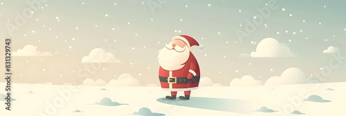 Jolly Santa Claus Figure in Snowy Winter Landscape with Minimal Flat Design Style