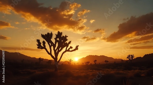 joshua, tree, desert, park, silhouetted, vibrant, sunset, sky