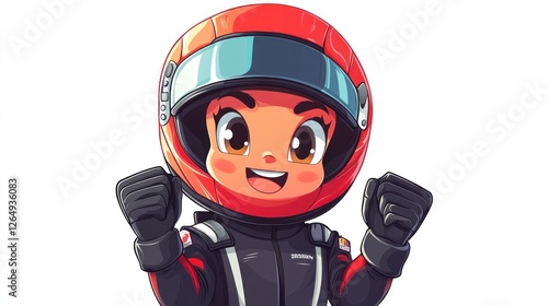 racer, victory, cartoon, celebration, joyful, happy, girl, racing, sport, driver, helmet, excited, success, achievement, winning, female, powerful, strong, confident, determined, ambitious, passionate, energetic, optimistic, enthusiastic, motivated, spirited, triumph, accomplishment, champion, speed, adrenalin, competition, challenge, perseverance, determination, courage, spirit, teamwork, fun, excitement, action, illustration, character