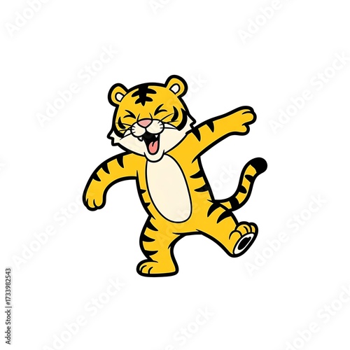 tiger, baby animal, cartoon, animal, cute, joyful, happy, playful, dance, energetic, excitement, celebration, fun, wildlife, illustration, drawing, vector, graphic, character, design, icon, symbol, children, children, party, mascot, adorable, whimsical, dynamic, creative