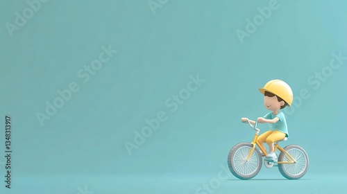 children, bicycle, bike, riding, yellow, helmet, blue, background, cartoon, illustration, three-dimensional, rendering, children, boy, happy, fun, playful, summer, joyful, active, sport, healthy, lifestyle, cute, adorable, childhood, innocence, simple, minimal, bright, colourful, pastel, clean, modern, graphic, design, vector, image, artwork, digital, art, happy child, playtime, children