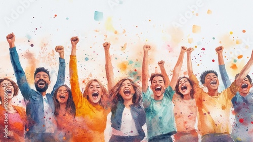 diverse, team, celebration, successful, product, launch, watercolor, painting, happiness, joy, achievement, oneness, teamwork, cooperation, diversity, business, networking, collaboration, creative, innovative, success, together, multicultural, event, growth, progress