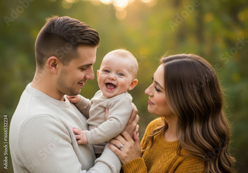 family, baby, portrait, outdoors, happiness, joy, love, children, infant, father, mother, together, photo, newborn, smiling, laughter, candid, lifestyle, golden hour, natural light, affection, cherish