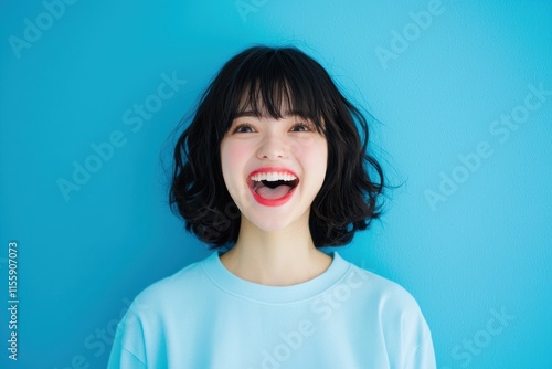 happiness, joy, smile, laughter, woman, youth, fun, expression, cheerful, bright, casual attire, beauty, portrait, indoor, playful, innovative, freshness, vibrant, carefree, positive, emotion, lifestyle, face, human, hair, curl, trendy, fashion, energizing, attractive, friendly, engagement, excitement, ambience, living, natural, wellness, twinkle, mood, spirit, intimate, peace, brightness, portraiture, character, individuality, authenticity