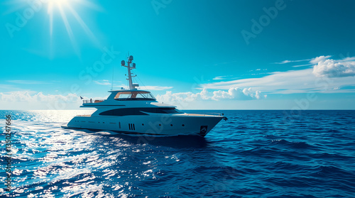 Judul: Luxury Yacht Sailing on a Bright Blue Ocean Under the Sun