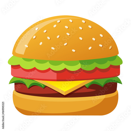 Juicy Burger Vector Illustration on White Background