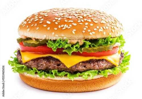 burger, cheeseburger, sesame, bun, lettuce, tomatoes, pickle, cheese, beef, fast, food, delicious, meal, snack, epicure, fresh, ingredient, cooking, preparation, eatery, lunch, dinner, cookery, hamburger, savoury, grill, tasty, kitchen, healthy, eating, party, picnic, indulgent, comfort, culinary, dish, presentation, serving, appetising, favor, freshness, nourishment, bite