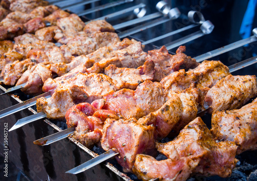 Juicy chunks of meat fried on the grill