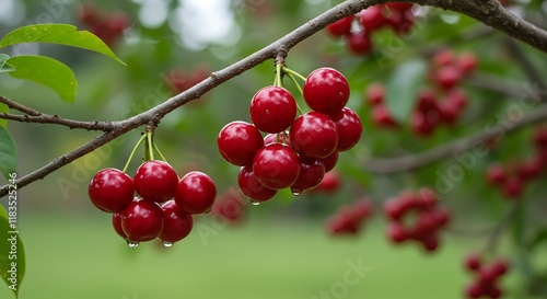Juicy Red Cherries on Branch Summer Fruit Fresh Harvest