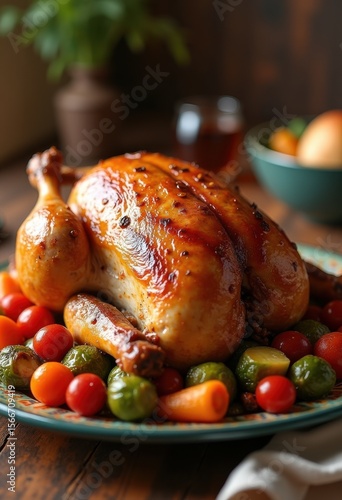 juicy turkey succulent roast dinner vibrant seasonal vegetables fresh colorful plate presentation culinary delight, platter, food, ingredients, harvest