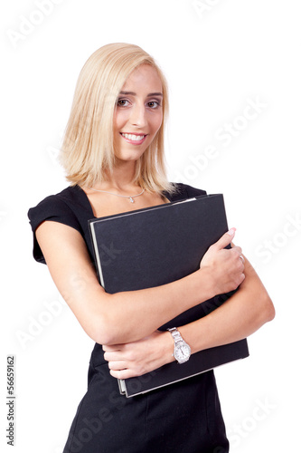 junge erfolgreiche geschäftsfrau mit akten ordner portrait