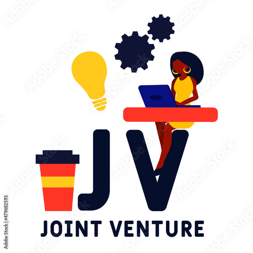 JV - Joint Venture acronym. business concept background. vector illustration concept with keywords and icons. lettering illustration with icons for web banner, flyer, landing pag