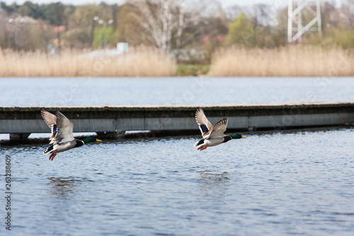 Kaczki krzyżówki w locie