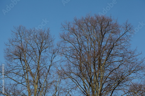 tree, broadleaf tree, twig, bough, twig, bald, bald, crown, treetop, blue skies, closeup, texture, winter, german, europa, eu, plant, outside