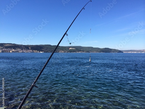 fish, line, game, holding, hobby, ravine, sea, salty, water, reed, mussel, lead, ship, man