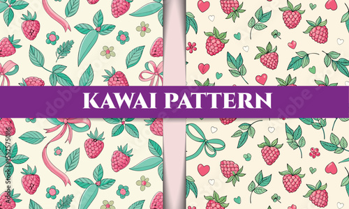 Kawaii Strawberry Patterns Cute Seamless Designs for Backgrounds and Prints